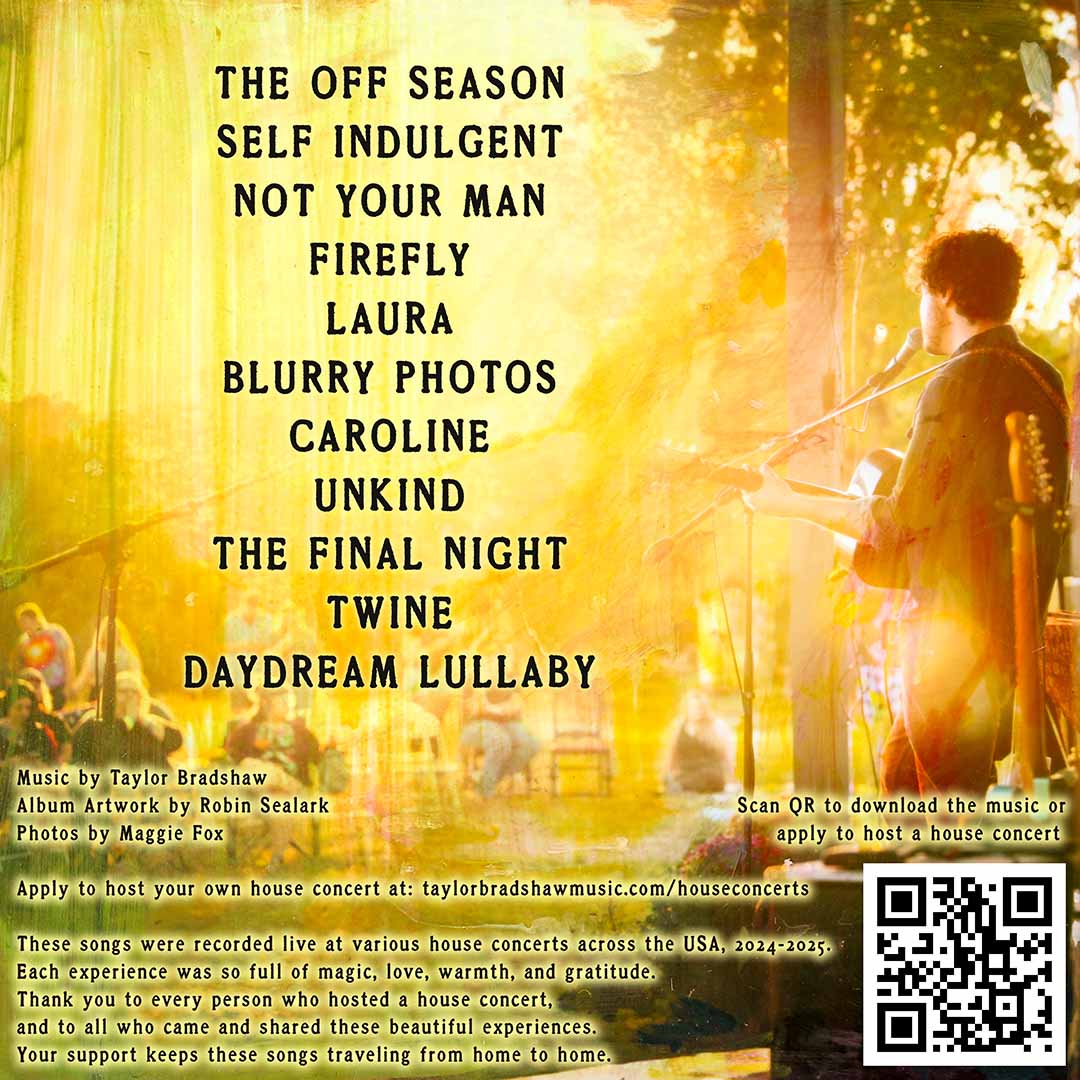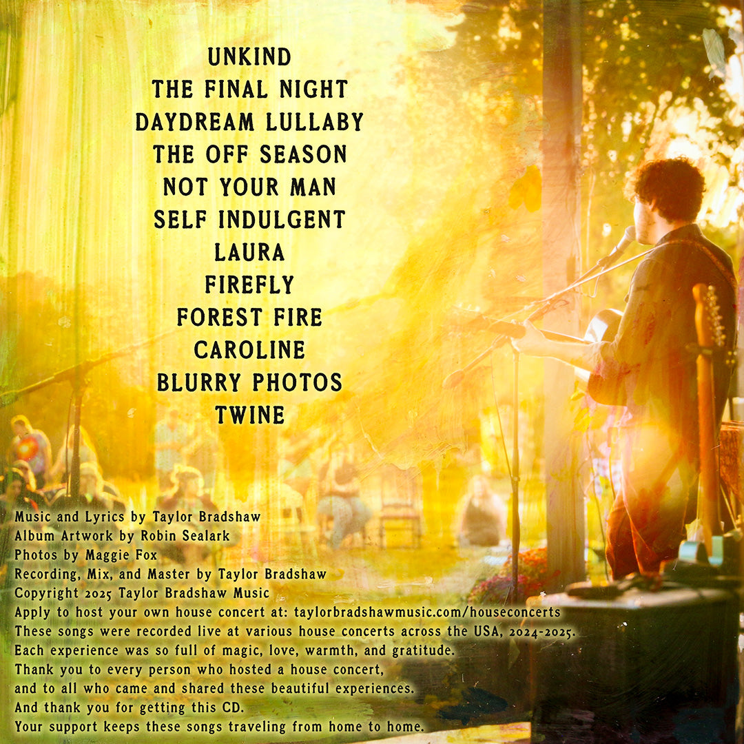 Your House Concert Tapes CD ships in just a few weeks. Preorder today to reserve your copy and bring the warmth, stories, and songs of those backyard nights into your own home.